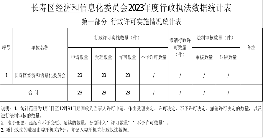 重慶市長壽區(qū)經(jīng)濟和信息化委員會關(guān)于2023年度行政執(zhí)法數(shù)據(jù)的公示