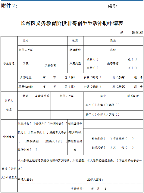 2.長壽區家庭經濟困難非寄宿生生活補助申請表