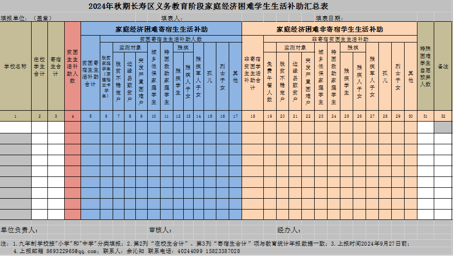 3.長壽區義務教育階段家庭經濟困難學生生活補助匯總表
