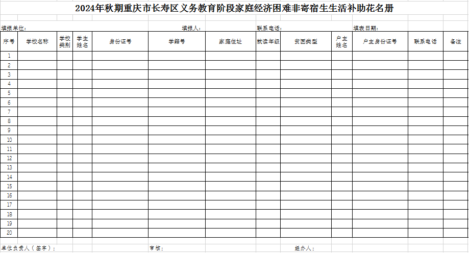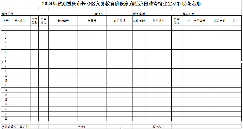 學校按照《重慶市長壽區教育委員會等七部門關于印發<重慶市長壽區家庭經濟困難學生認定辦法(修訂)>的通知》(長教發〔2023〕17號)要求,對家庭經濟困難學生提交的申請材料進行審核,將審核確定名單在校內醒目位置公示5個工作日。公示無異議后,學校填寫《重慶市長壽區義務教育階段家庭經濟困難學生生活補助匯總表》(附件3),并在全國學生資助系統中錄入相關信息。