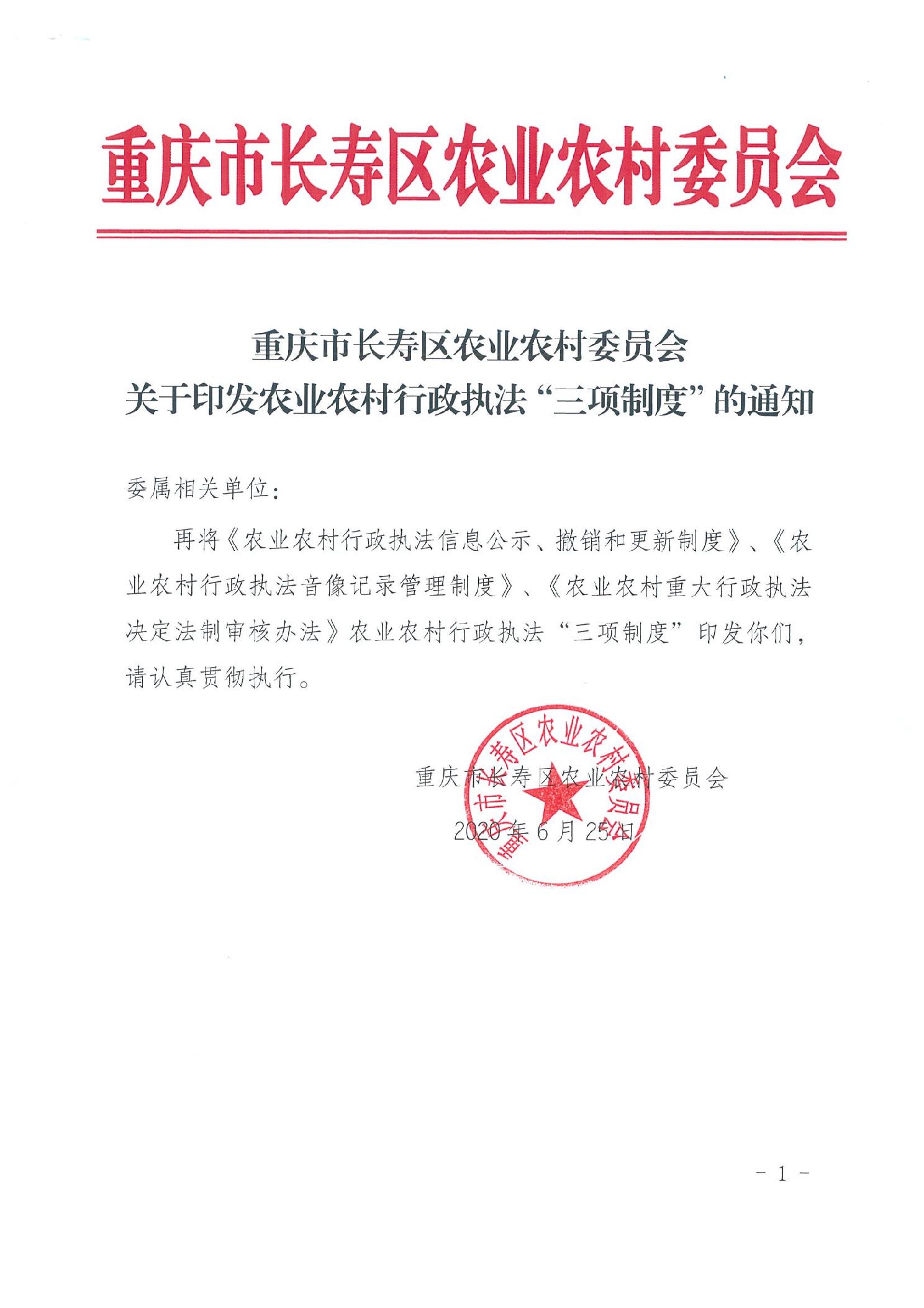 重慶市長壽區(qū)農(nóng)業(yè)農(nóng)村委員會關于印發(fā)農(nóng)業(yè)農(nóng)村行政執(zhí)法“三項制度”的通知