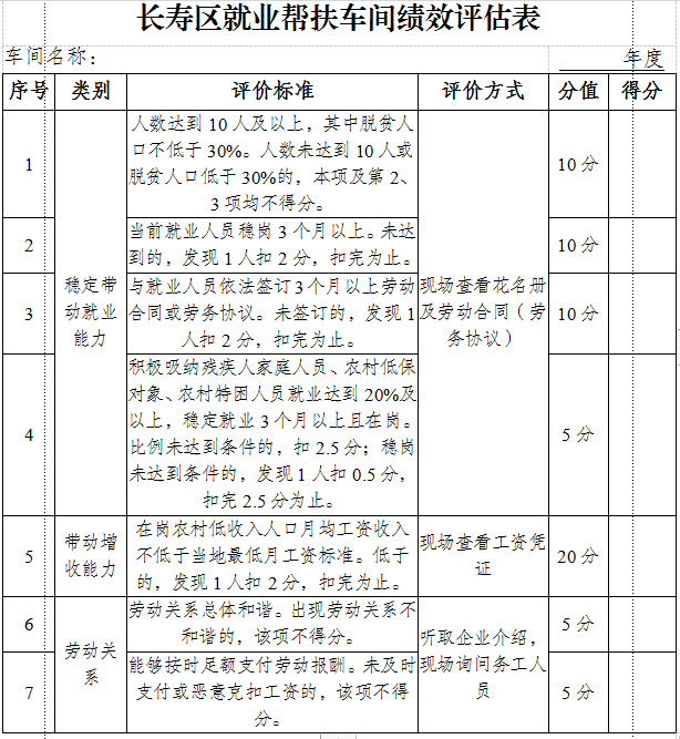 ? ? ? 3.長壽區就業幫扶車間績效評估表