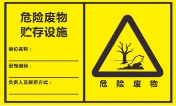 設置在貯存危險廢物的設施、場所,用于引起人們對危險廢物貯存、利用、處置活動的注意(危險廢物設施標志背景顏色為黃色,圖形和邊框顏色為黑色,字體為黑色黑體字)。