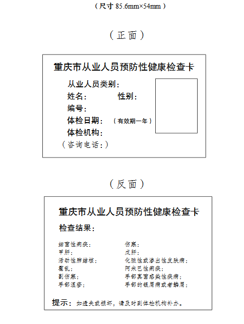 2.重慶市長壽區從業人員預防性體檢卡(參考)