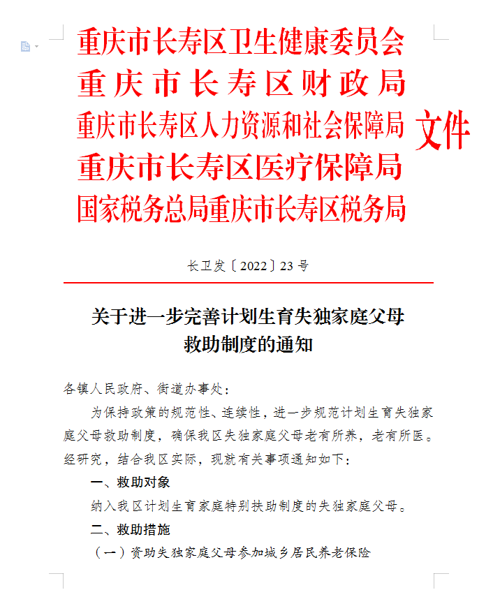 關(guān)于進(jìn)一步完善計(jì)劃生育失獨(dú)家庭父母救助制度的通知