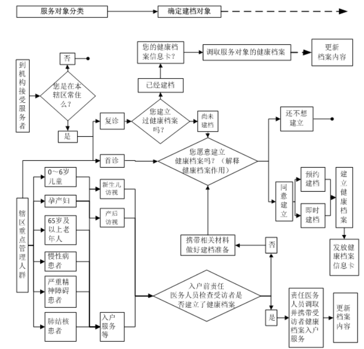 2.通過入戶服務(調查)、疾病篩查、健康體檢等多種方式,由鄉鎮衛生院、村衛生室、社區衛生服務中心(站)組織醫務人員為居民建立健康檔案,并根據其主要健康問題和服務提供情況填寫相應記錄。