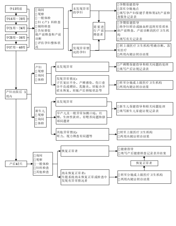 (1)鄉鎮衛生院、社區衛生服務中心為正常產婦做產后健康檢查,異常產婦到原分娩醫療衛生機構檢查。