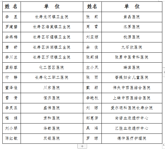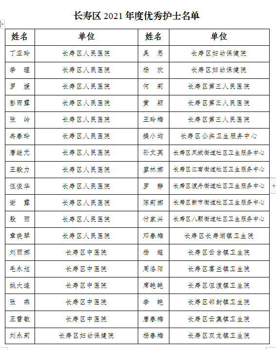 長壽區衛生健康委員會關于長壽區2021年度優秀護士評選結果的通報