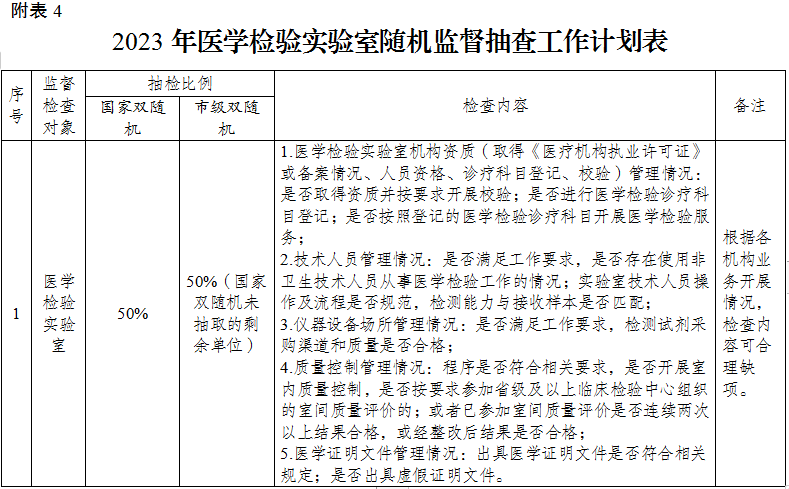??????4.2023年醫學檢驗實驗室隨機監督抽查工作計劃表