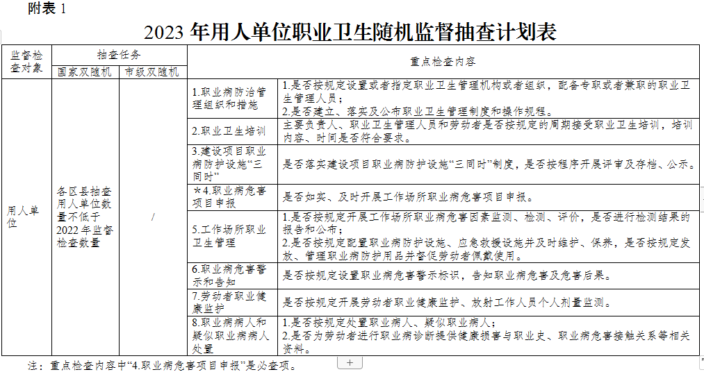 附表:1.2023年用人單位職業衛生隨機監督抽查計劃表