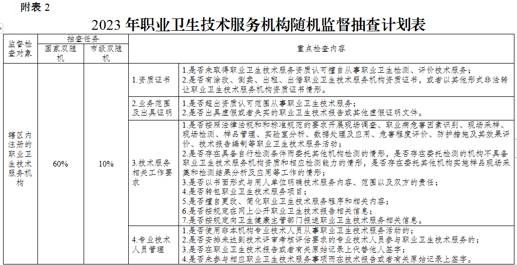 ??????2.2023年職業衛生技術服務機構隨機監督抽查計劃表
