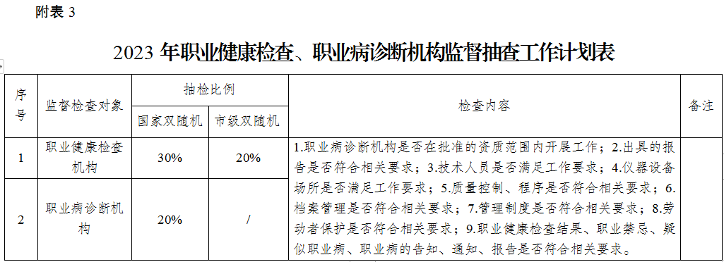 ??????3.2023年職業健康檢查、職業病診斷機構監督抽查工作計劃表