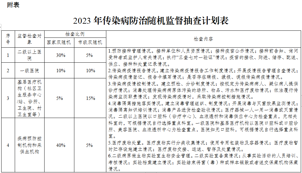 2023年醫療衛生機構傳染病防治隨機監督抽查計劃