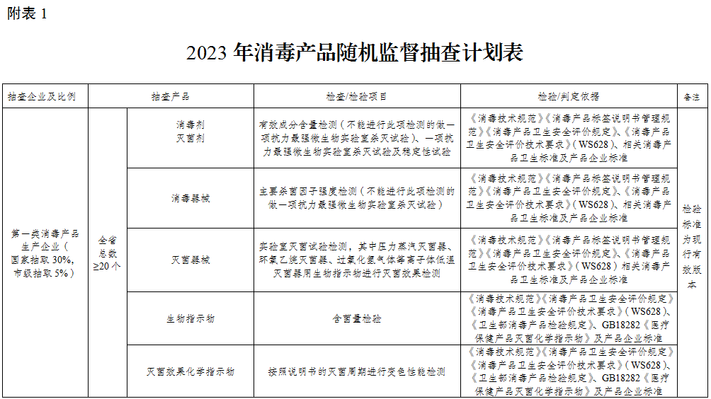 附表:1.2023年消毒產品隨機監督抽查計劃表