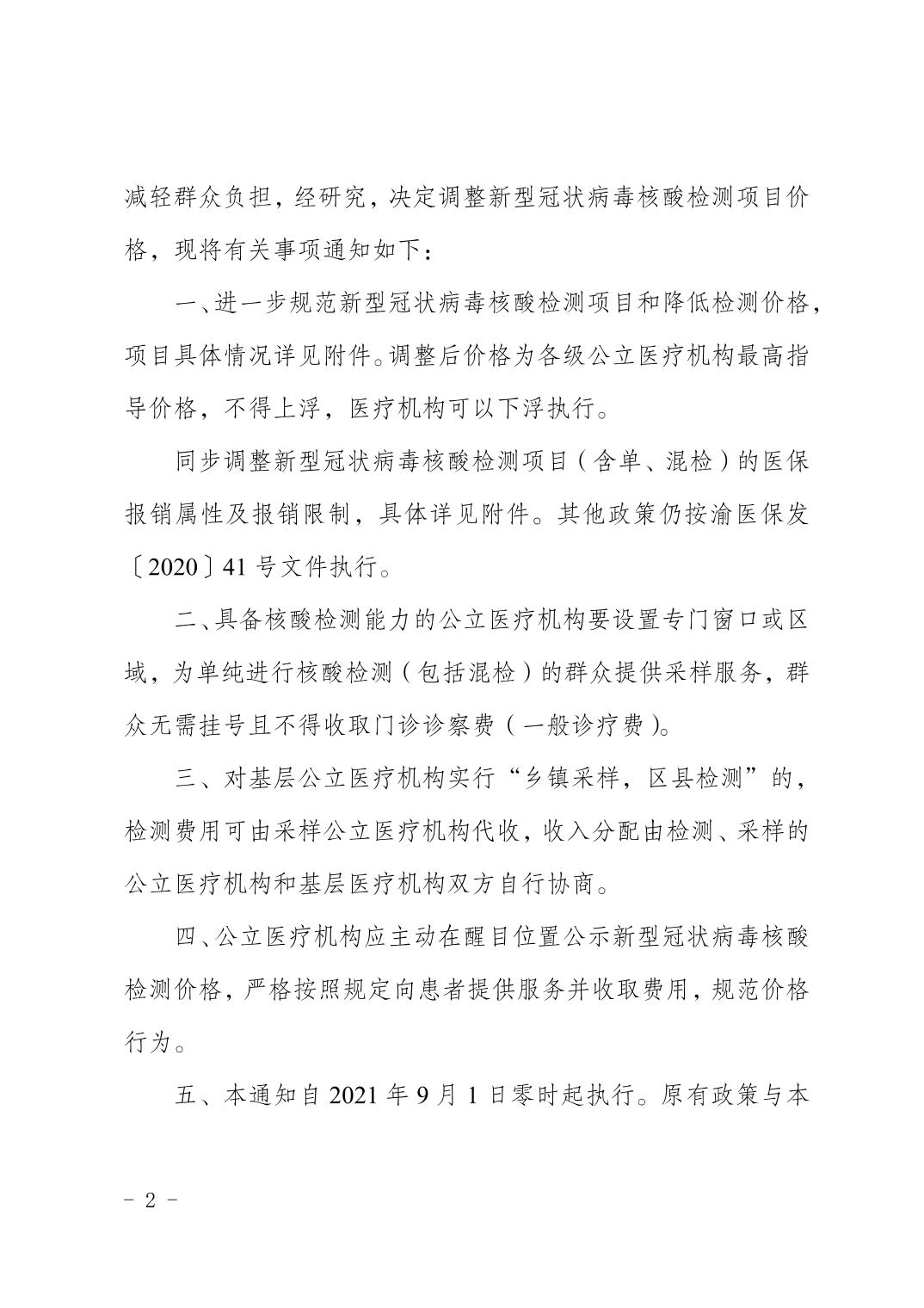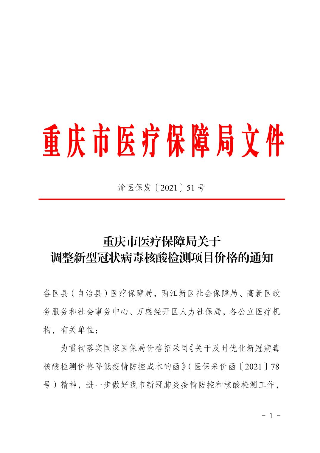 重慶市醫療保障局關于調整新型冠狀病毒核酸檢測項目價格的通知