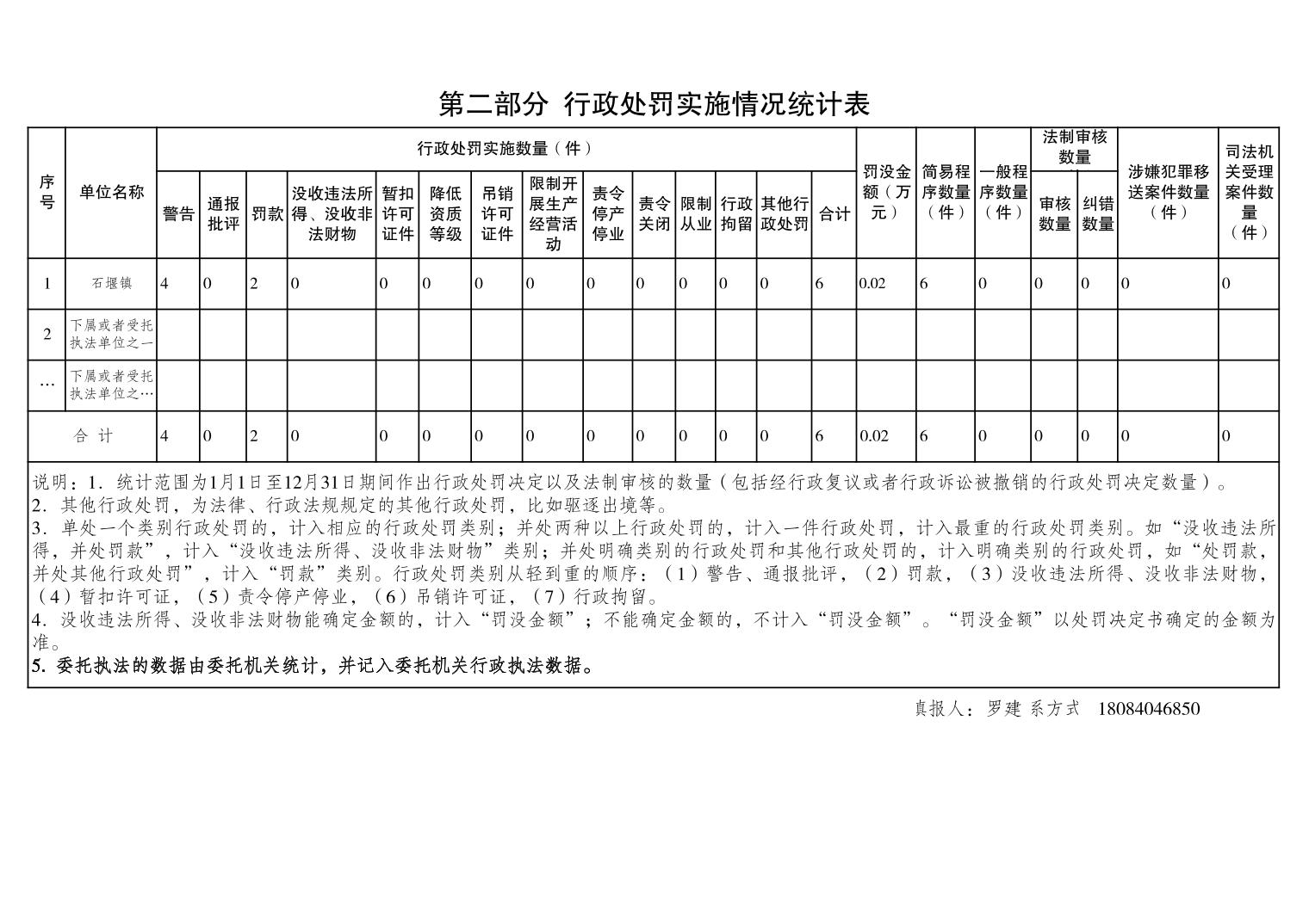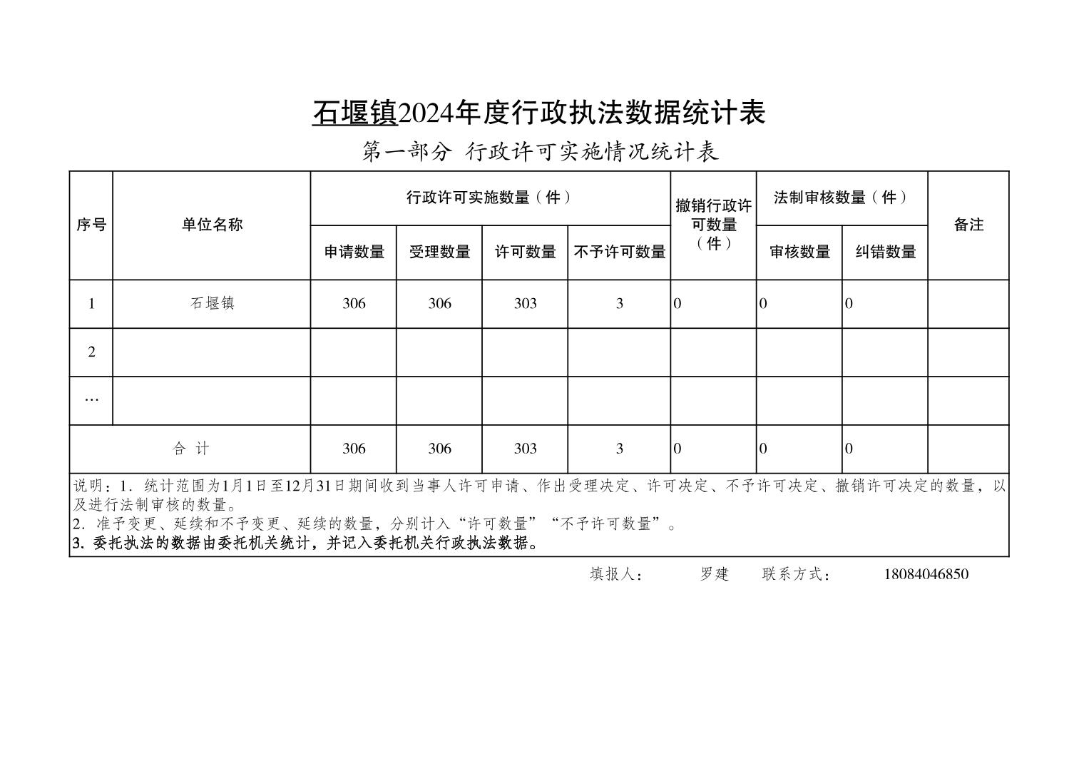 重慶市長壽區(qū)石堰鎮(zhèn)2024年度行政執(zhí)法數(shù)據(jù)公示