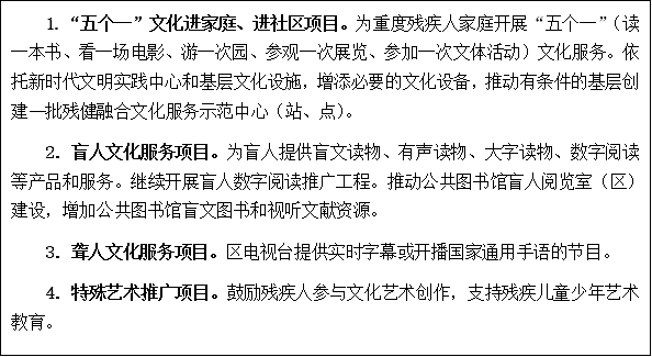——均等化的殘疾人基本公共服務(wù)體系更加健全,殘疾人受教育水平不斷提高,文化體育生活更加豐富,思想道德素質(zhì)、科學(xué)文化素質(zhì)和身心健康素質(zhì)明顯提高。